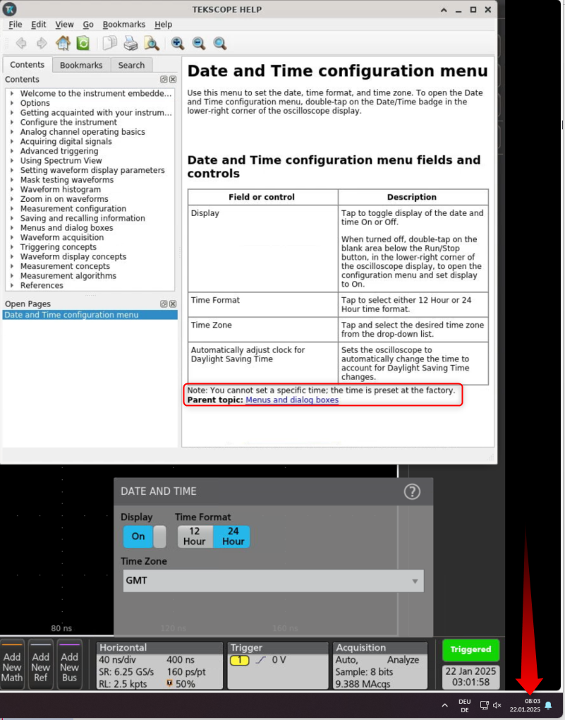 I'm using several MSO58LP with Firmware Version 2.10.5.1825 and they all show the wrong system time. This is unfortunate because it leads to confusion when analyzing screenshots.