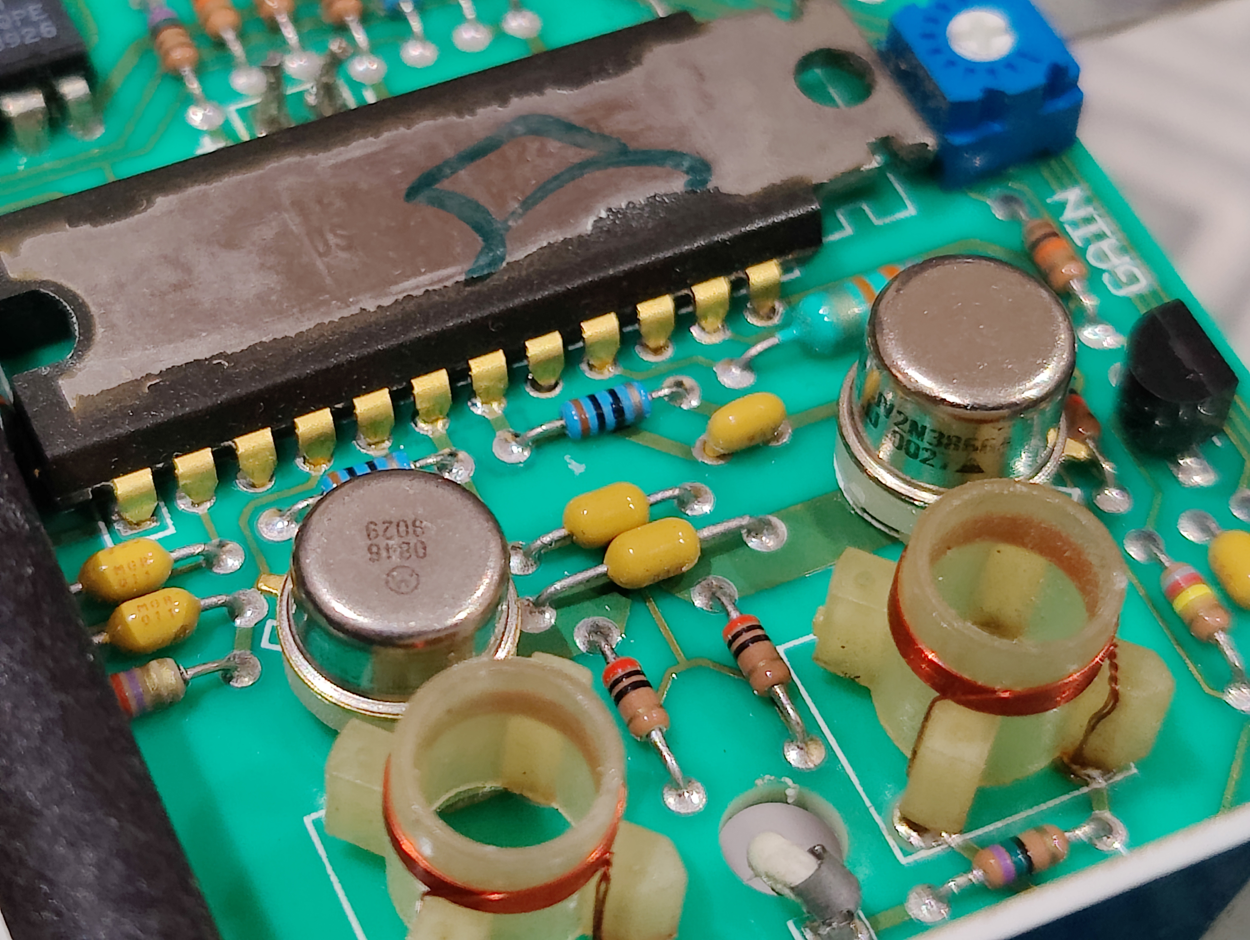 The chip appears to provide final VO gain with trimmer, beam finder, and bandwidth limits. Possibly reproducible in surface mount if anyone can take some measurements for me?